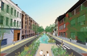 Булыжная улица также будет оснащена широкими велосипедными дорожками с обеих сторон. Улица является частью велосипедной экспресс-сети RER.